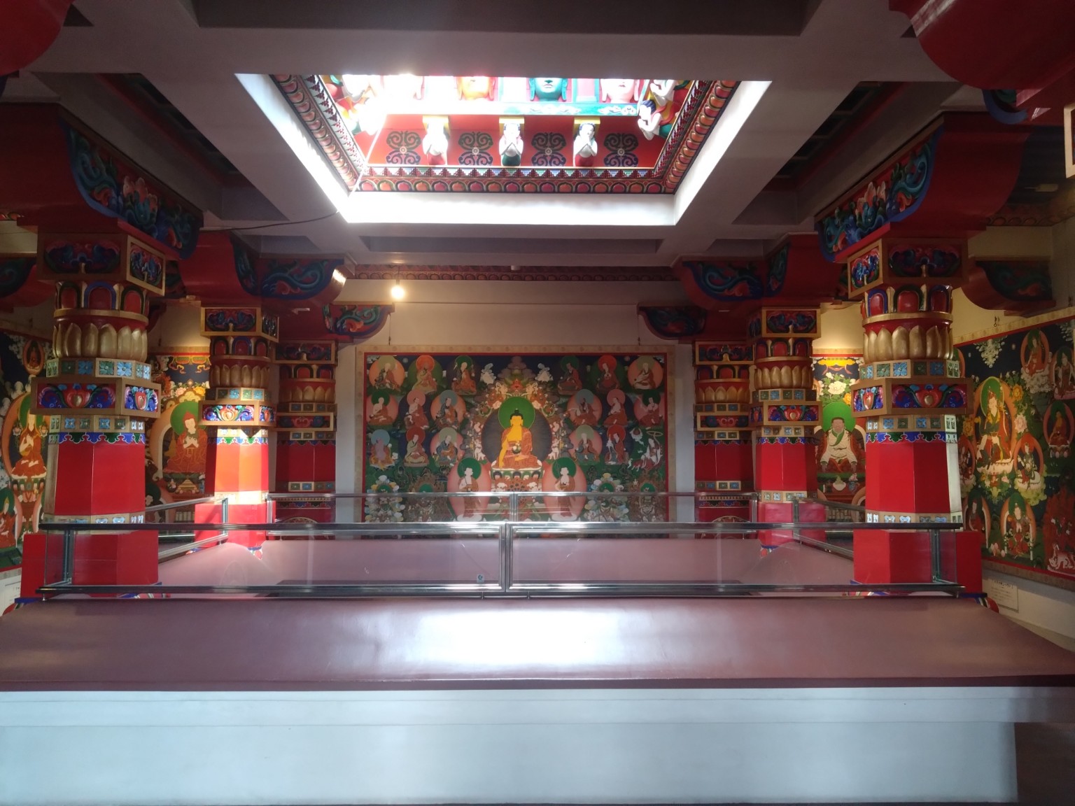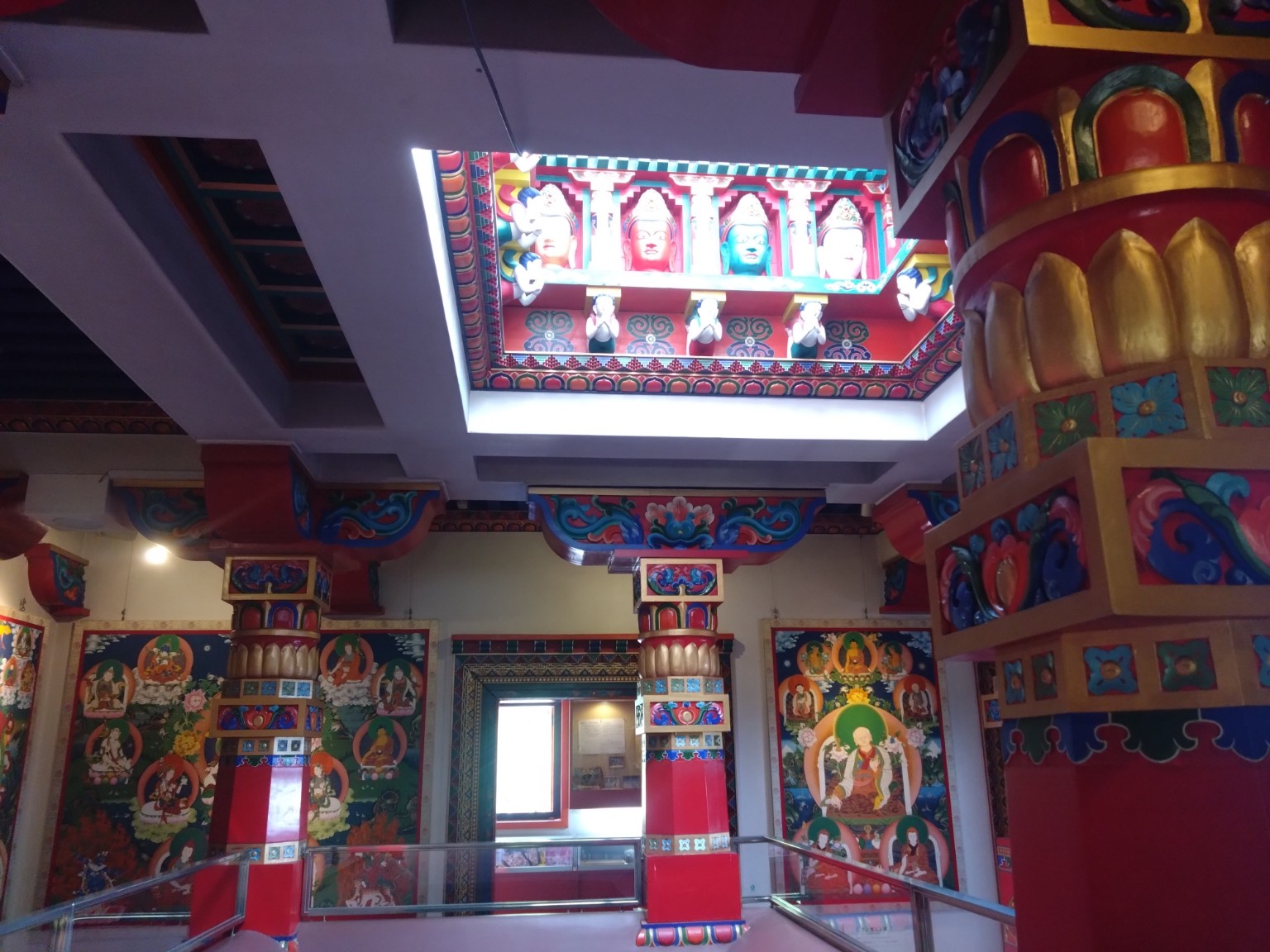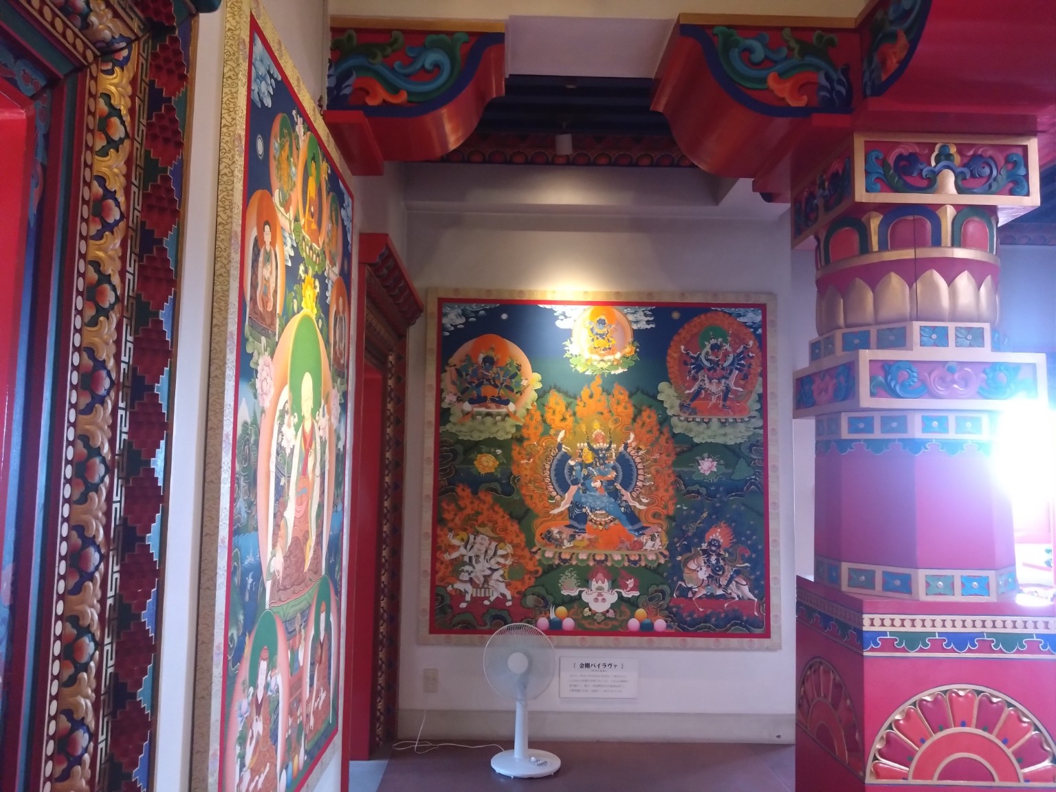吹き抜けになっていて壁一面にはチベット仏教に関する絵画が観ることが出来ます。